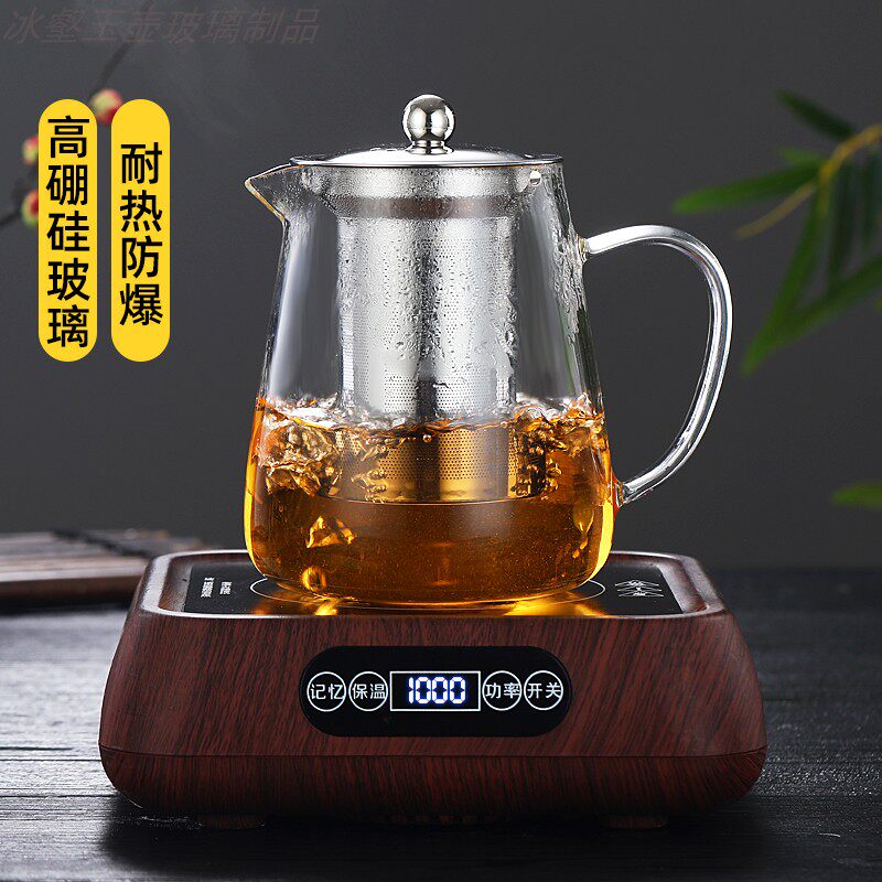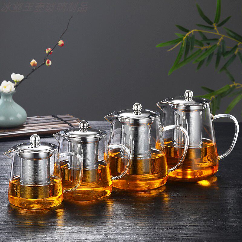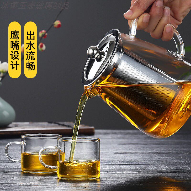 Ice tea jade pot Heat-resistant glass teapot Stainless steel filter tea cup Household glass tea set Kung Fu Tea set