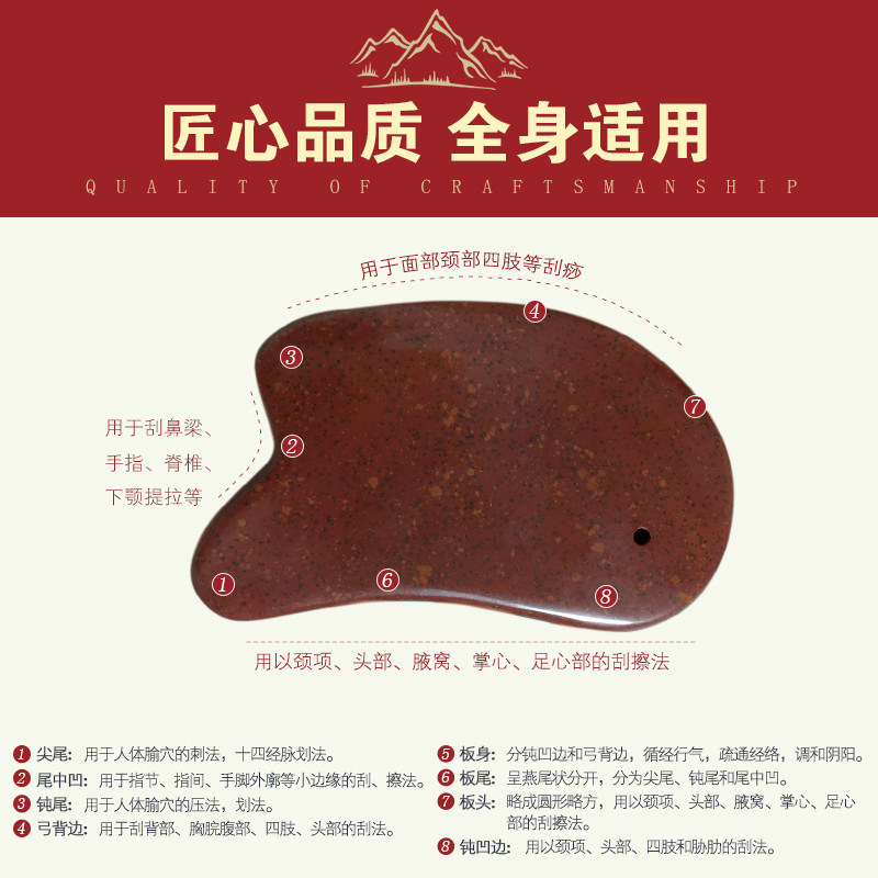 Red needle stone scraping board natural heating whole body dredging meridian beauty facial dialing stick energy stone scraping knife