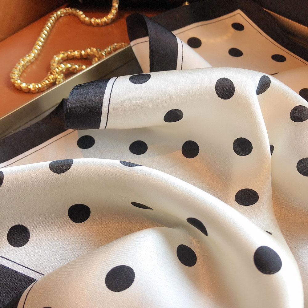 Classic white polka dot silk scarf soft and breathable 100% mulberry silk scarf temperament Hangzhou silk scarf