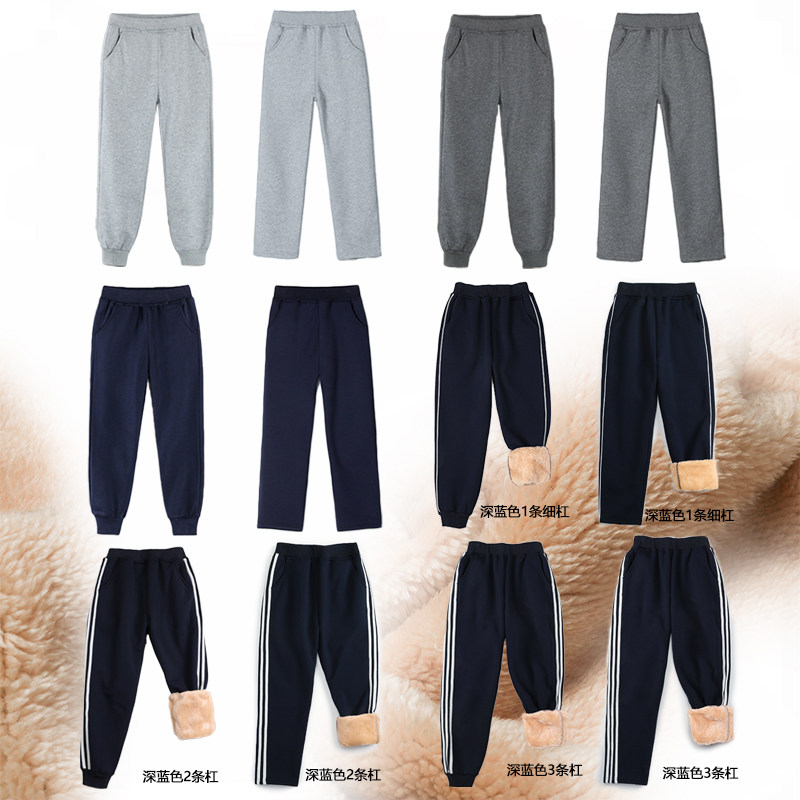 Boy gray sports pants in winter plus thickening children's pants big girls dark blue gray gray elementary school clothes