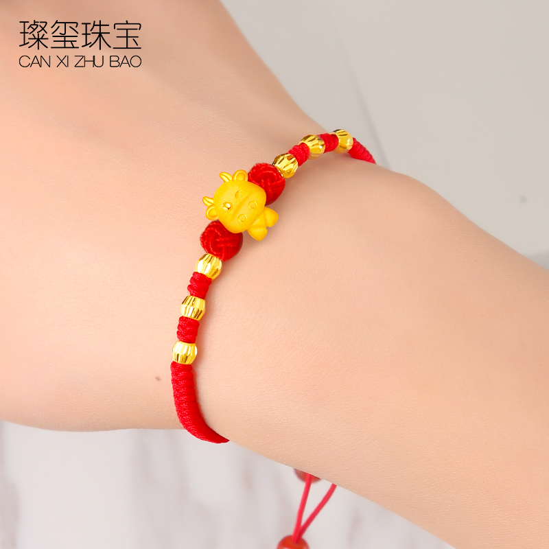 Zodiac Ox Red Rope Hand Refinement Gold Transfer Beads Hand Refinement 999 Pure Gold Jewelry Men's and Women's Baby Hand Strap
