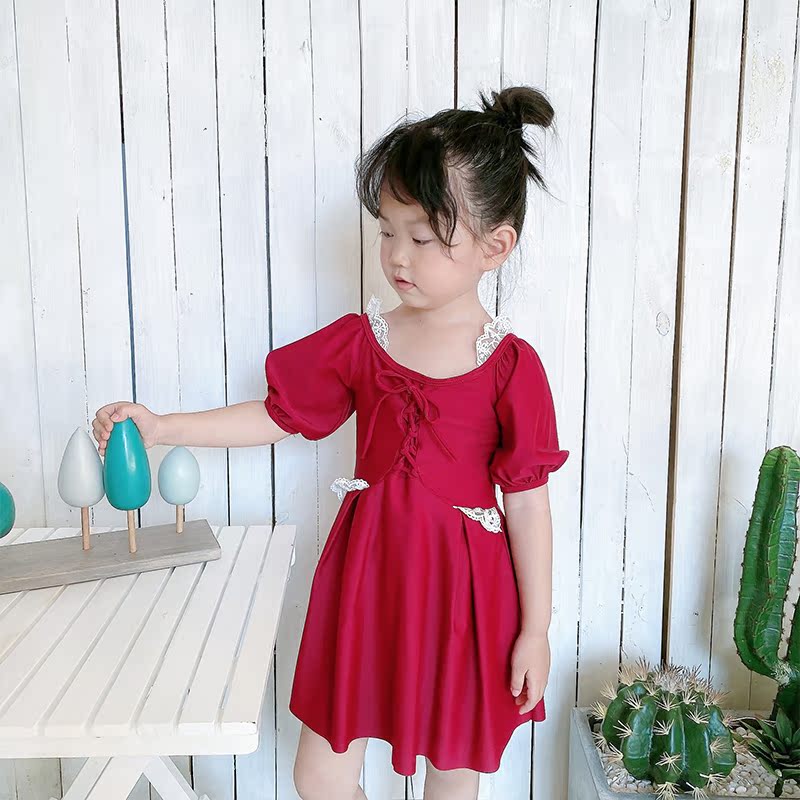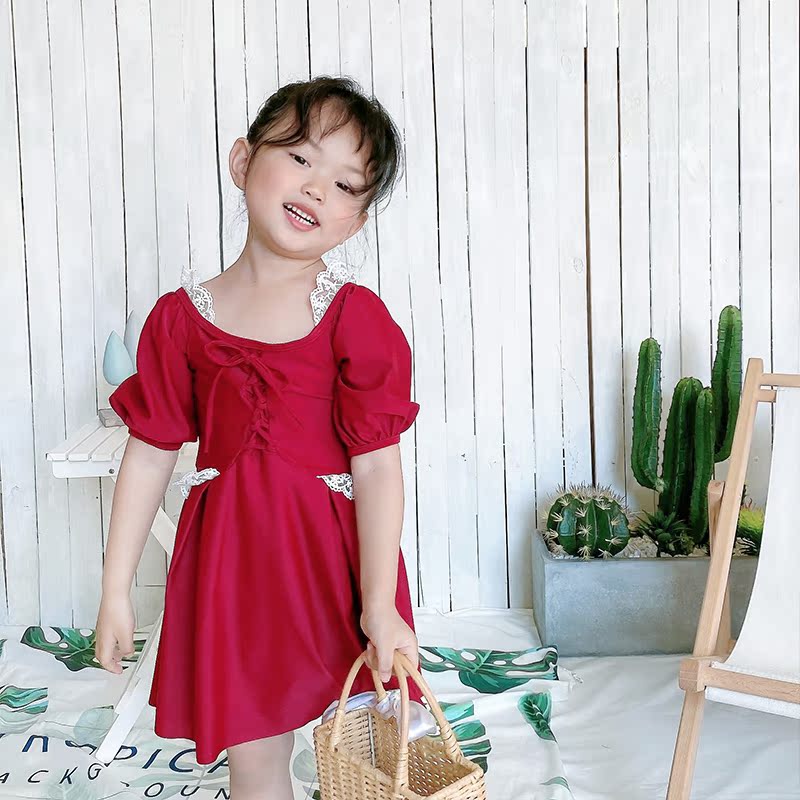 Parent-child swimsuit children's red mother and daughter 2021 New skirt type middle-aged child hot spring girl swimsuit