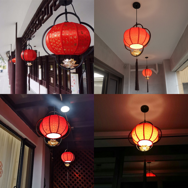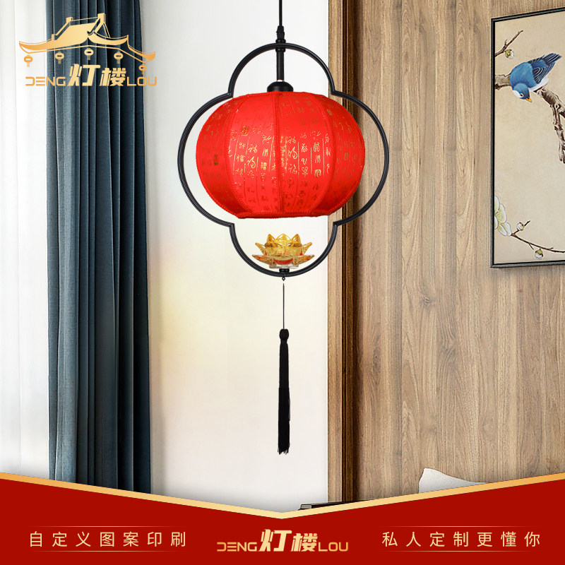 New Chinese Great Red Fu Character Festive Palace Lantern Lotus Flower Decoration Balcony Gallery Pass Through Jo Relocation Decoration Hung Lantern Pendant Lamp