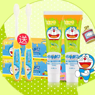 Tim Le Doraemon children's toothpaste toothbrush does not contain fluorine 1-3-6 years old can swallow 10-year-old primary school students mothproof set