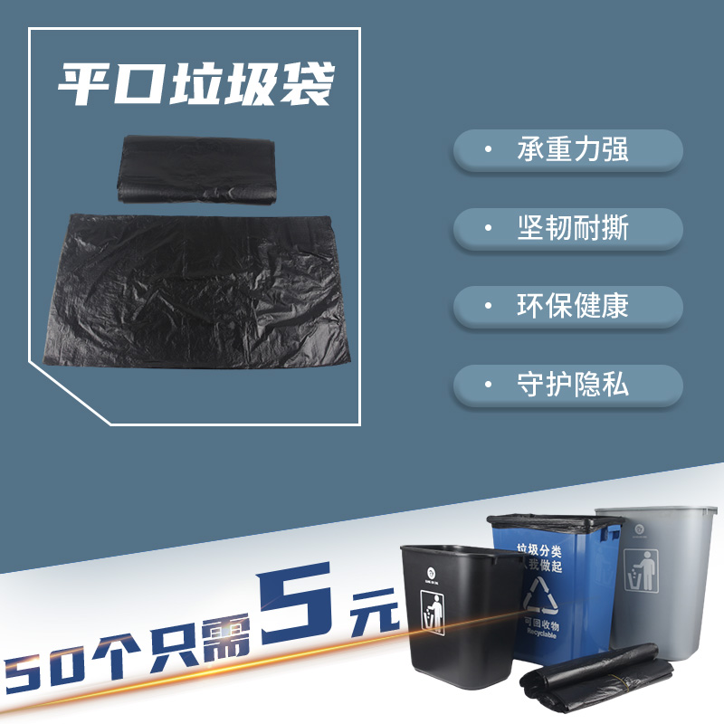 Plastic Flat Mouth Large Garbage Bag Large Thickened Black Hotel Commercial Sanitation Property Kitchen Home 60 mid No. 80
