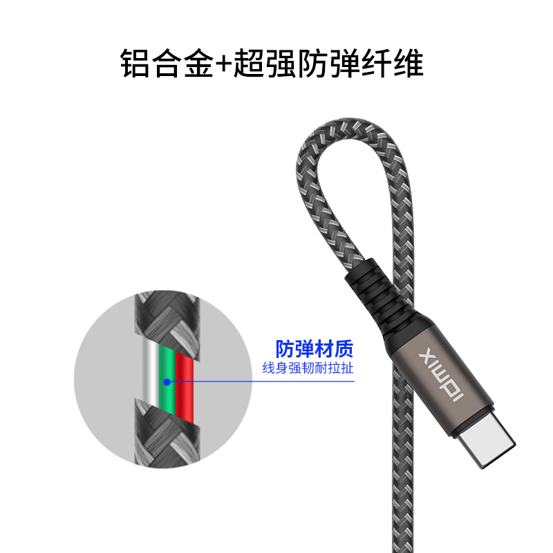 IDMIX lengthened 2 m data line Type-C public to usb3 1gen full function 100W fast charge double typec charge 5A carry-on hard disc to one wire 4K