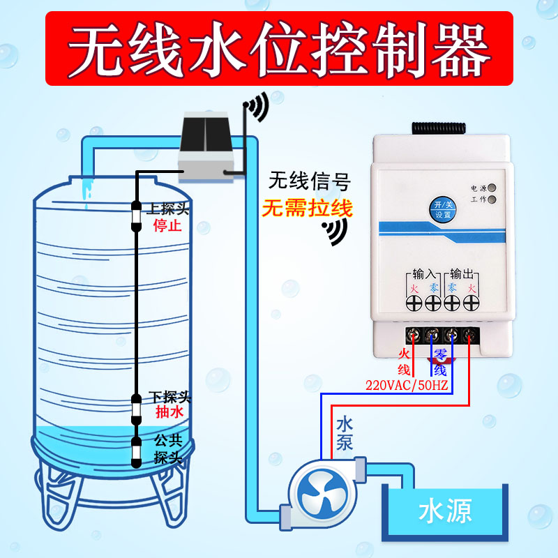 Wireless automatic induction water level controller Remote water tower water tank pool water pump intelligent liquid level switch