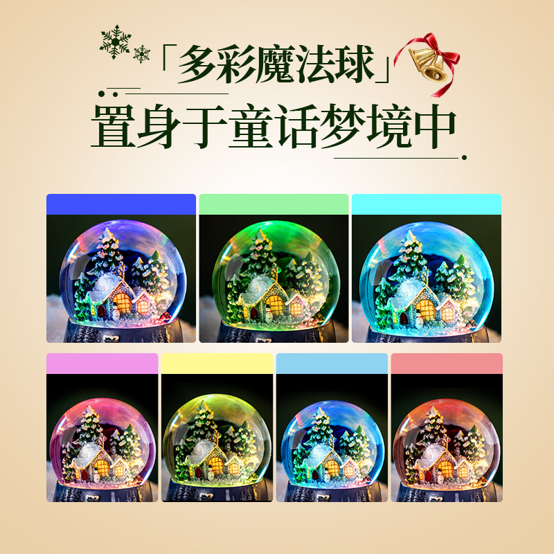 (Snowflake Crystal Ball) Automatic Snow Drift + Sky City + Colorful Lights + Interior Rotation + Exquisite Packaging
