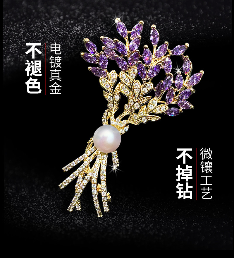 Xiaoxiangfeng European and American temperament high-end brooch female accessories wheat ear atmosphere luxury suit pin trend clothing decoration
