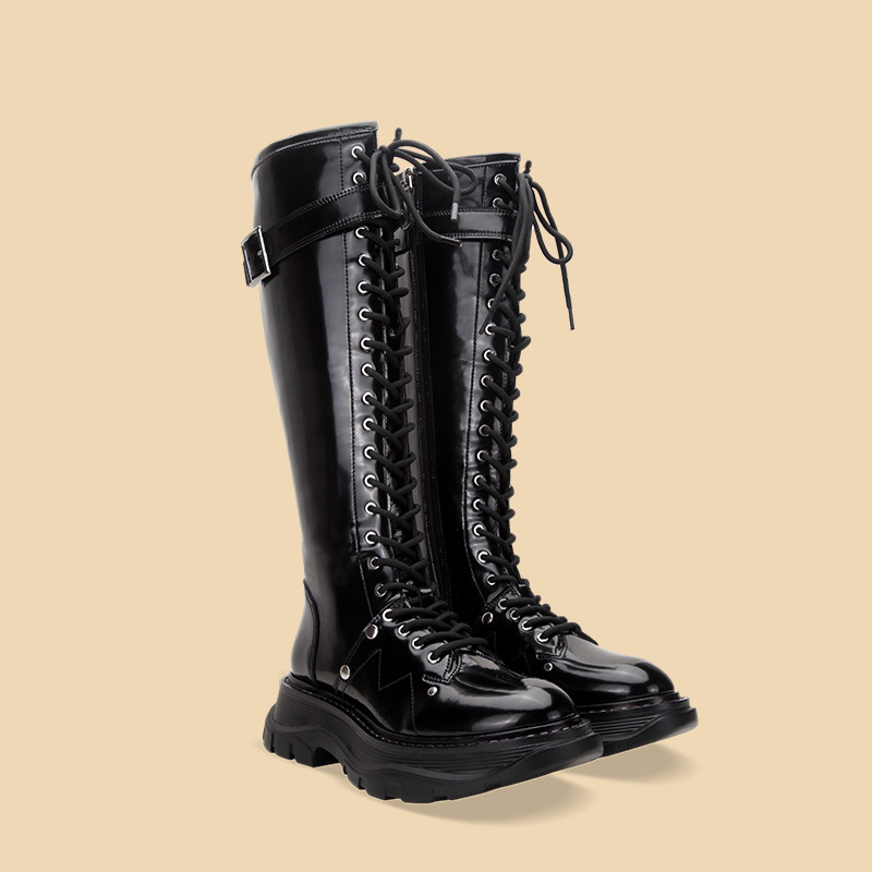 2021 New Mckunda High Cylinder Long Boot Thick Bottom Display Slim Strap Riding Boot Plus Suede Warm Martin Boots Children
