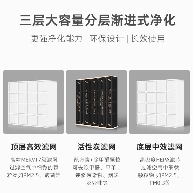 Top-layer high efficiency filter HealthPro100 150 250 Top-layer activated carbon filter HealthPro250 Second-layer bottom medium efficiency filter H