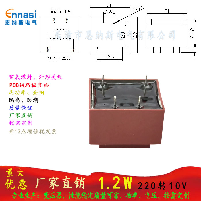 Epoxy pouring AC220V turns 10V 1 2W Customize pouring seal small black clamp type thermostat transformer EI28