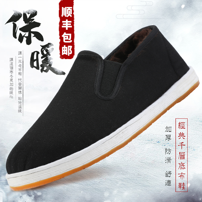 Old Beijing Cloth Shoes Men And Women Winter Cotton Shoes Thickened Suede Warm Non-slip Mid-Aged Dad Shoes Handmade Klayer Bottom