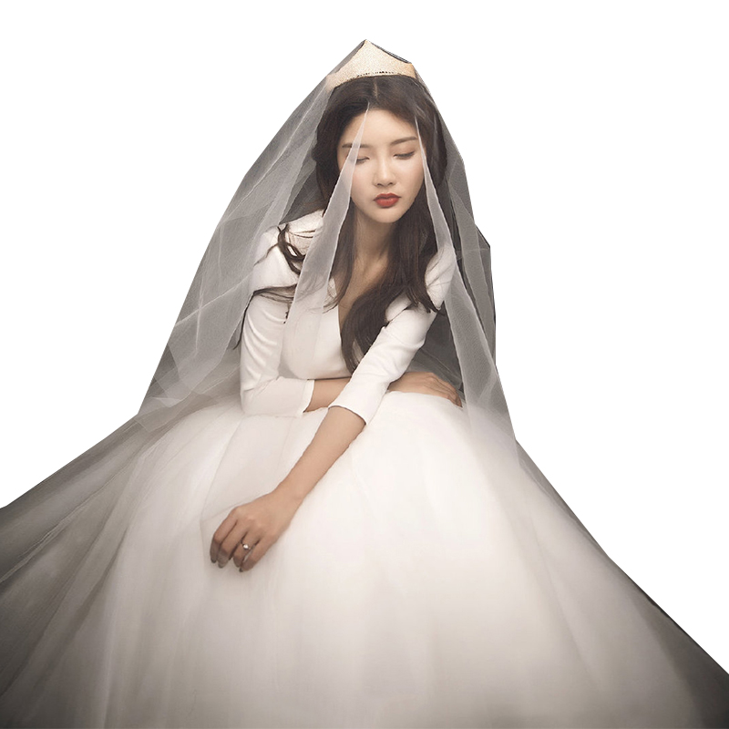 French light wedding dress 2022 new bride temperament small simple dress slimming go out gauze long sleeve winter