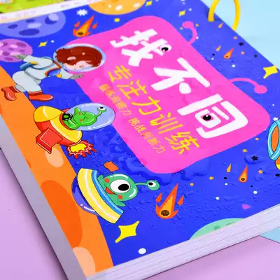 Children's fun to find different concentration training cards training Kindergarten puzzle early education 6-8-9 years old and above 10 years old primary school students difficult game books Look at pictures together to find differences Picture books
