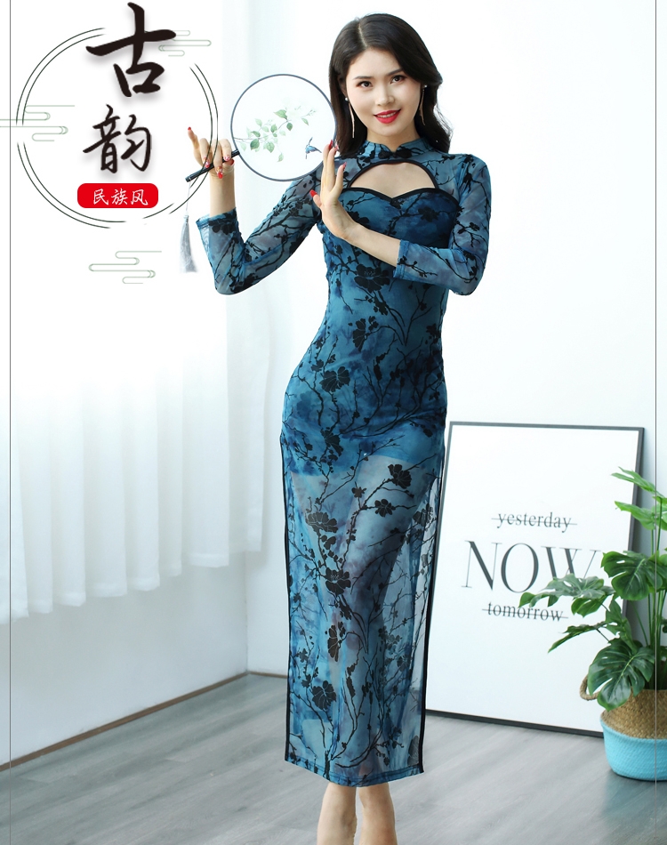 Parfait charm Chinese classical dance cheongsam practice clothes female body rhyme elegant gauze ethnic dance group performance costumes