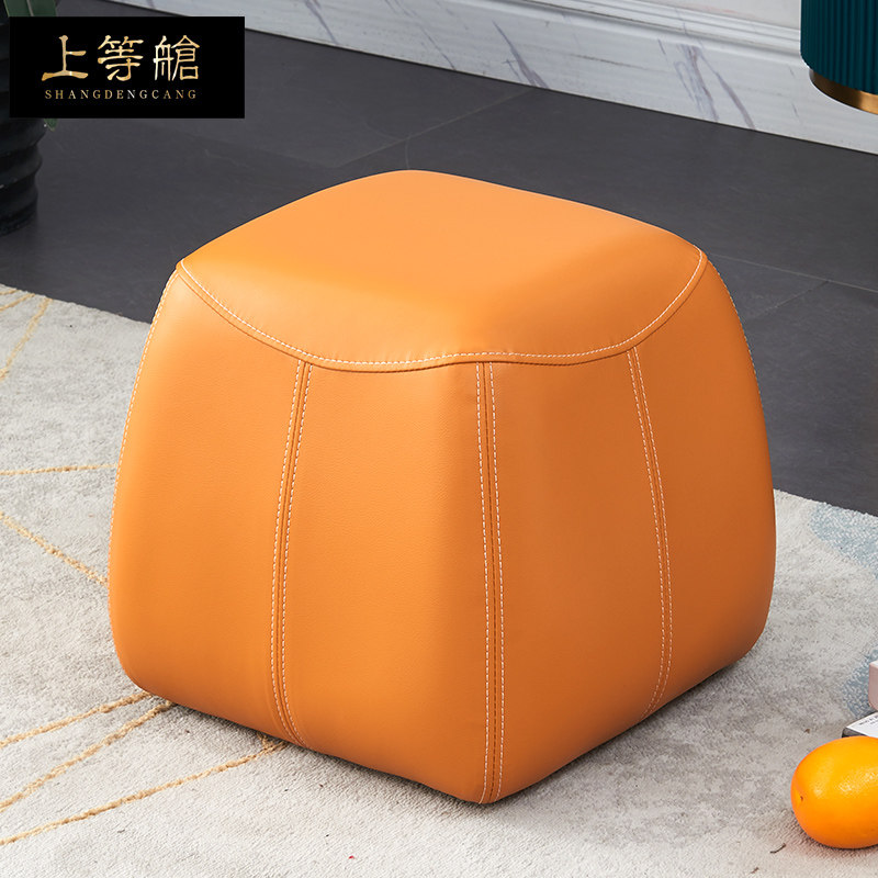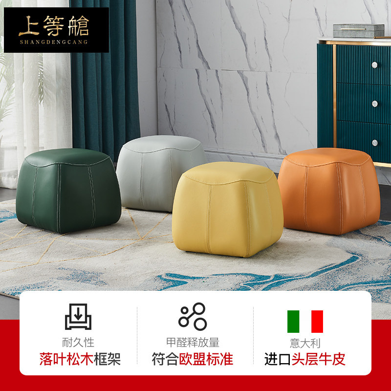 Real leather shoe changing stool doorway home living room sofa stool small leather mound wearing shoes stool short stool Makeup Stool Down-to-earth