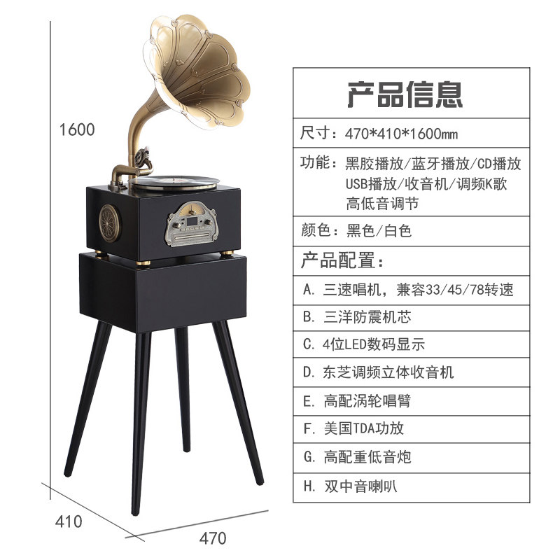 Vinyl record machine Gramophone Modern light luxury retro living room European household old-fashioned antique turntable electromechanical record machine