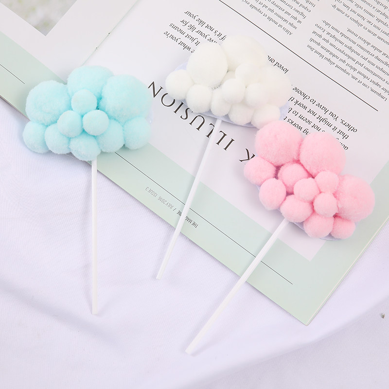 Birthday Cake Suede Blue Powder white Mao Cloud Dove Decorative Pendulum Wool plugin Birthday Party Dress-Taobao
