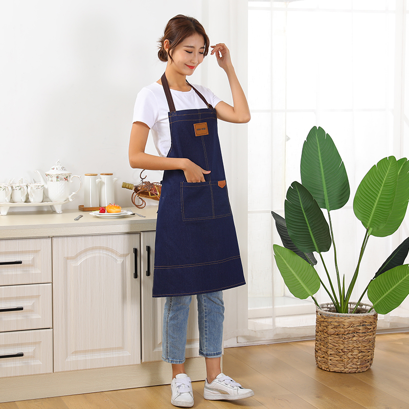 Apron household kitchen waterproof and oil-proof female wear-resistant and dirty-resistant apron fashion sling denim apron