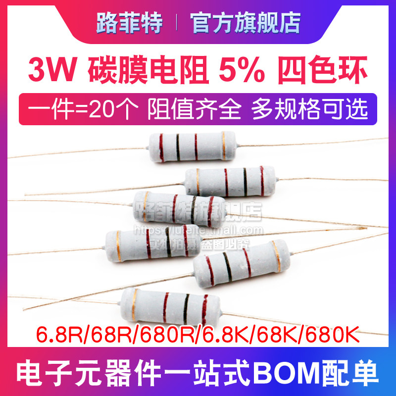 3W carbon film resistor 5% four-color ring 6 8R 68R 680R 6 8K 68K 680K ohm resistor