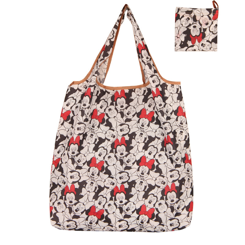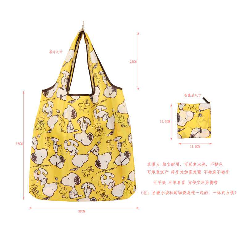 Cute and thin cartoon folding portable environmental protection shopping tote bag supermarket waterproof medium one-shoulder shopping cloth bag