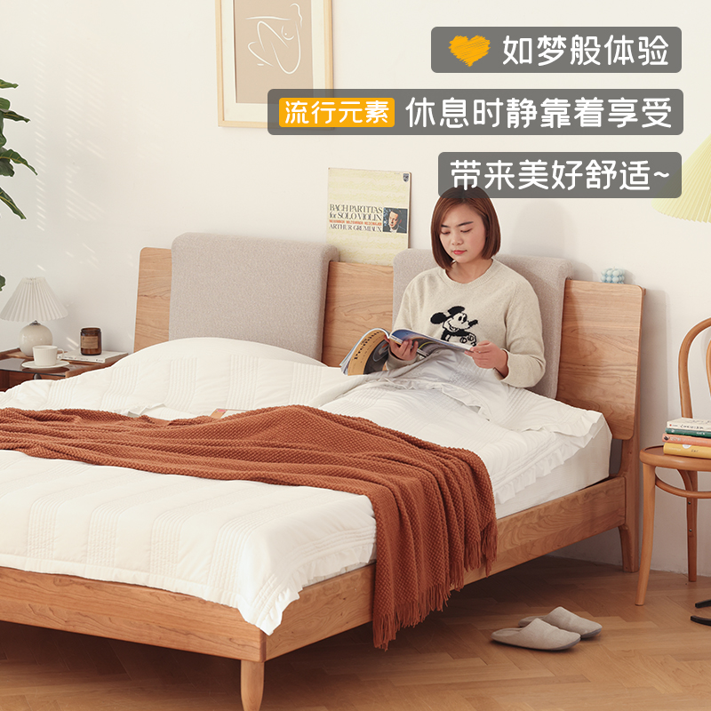 Nordic all solid wood bed thick bedside cushions can be removed and washable soft backrest bag