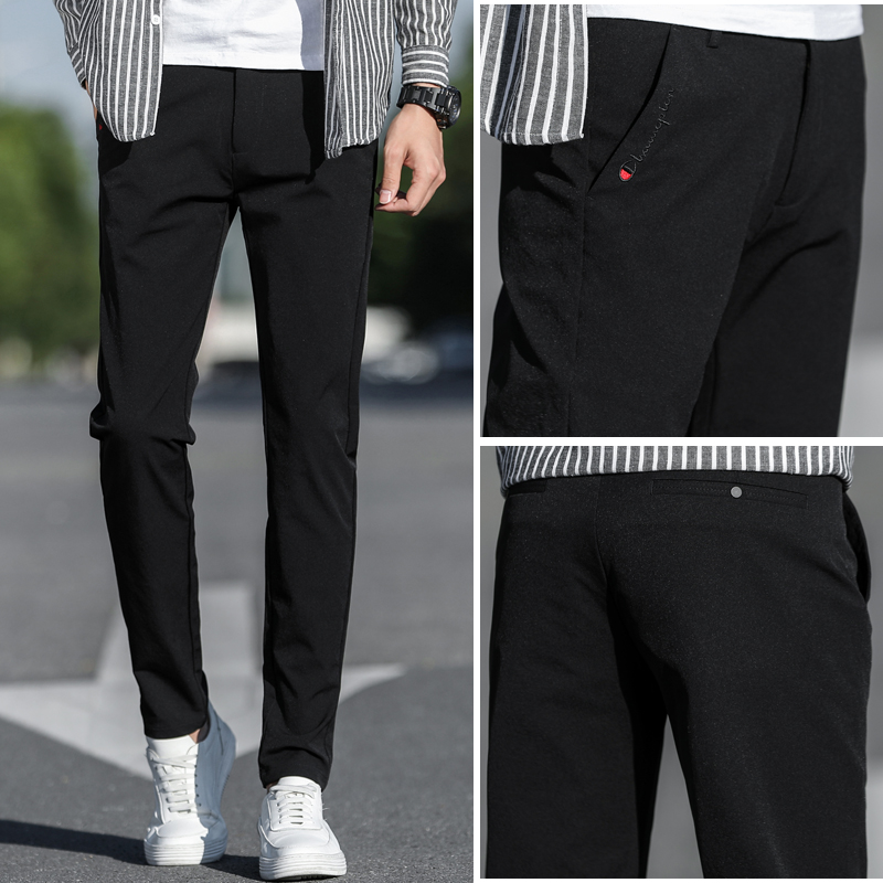 Autumn men's quick-drying pants slim-fitting small straight long pants men's non-stick wool men's casual pants men's summer thin section
