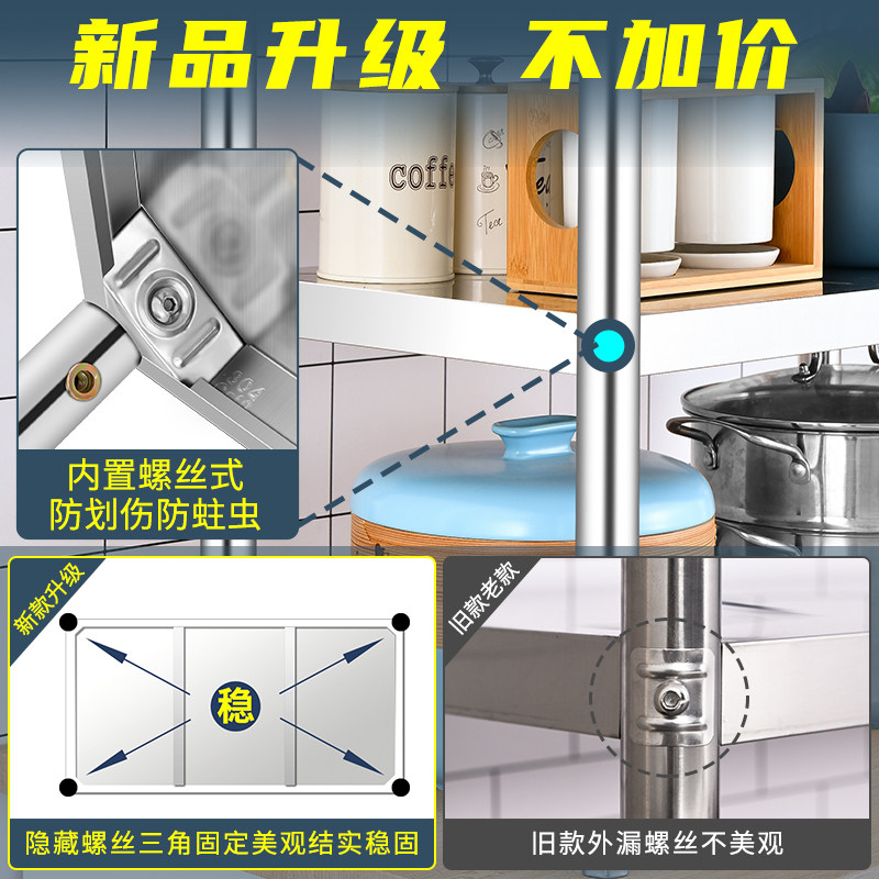 304 stainless steel layer Two 2 layer kitchen shelve containing pan rack microwave oven rack hearth rack table face frame