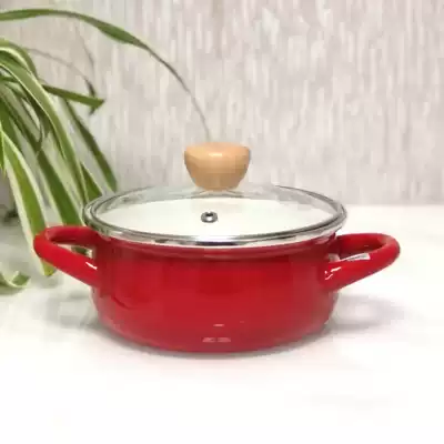 Japanese-style household thickened with lid single handle double-eared enamel milk pot cooking noodles cooking porridge hot milk soup pot gas induction cooker