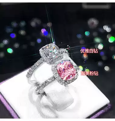 PT950 platinum American imported D-color Mosan diamond group pincushion Princess fat square pink diamond marriage marriage ring