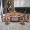 Hotel dining table Large round table Electric turntable dining table 15 people 20 people box banquet Solid wood new Chinese style with electromagnetic stove