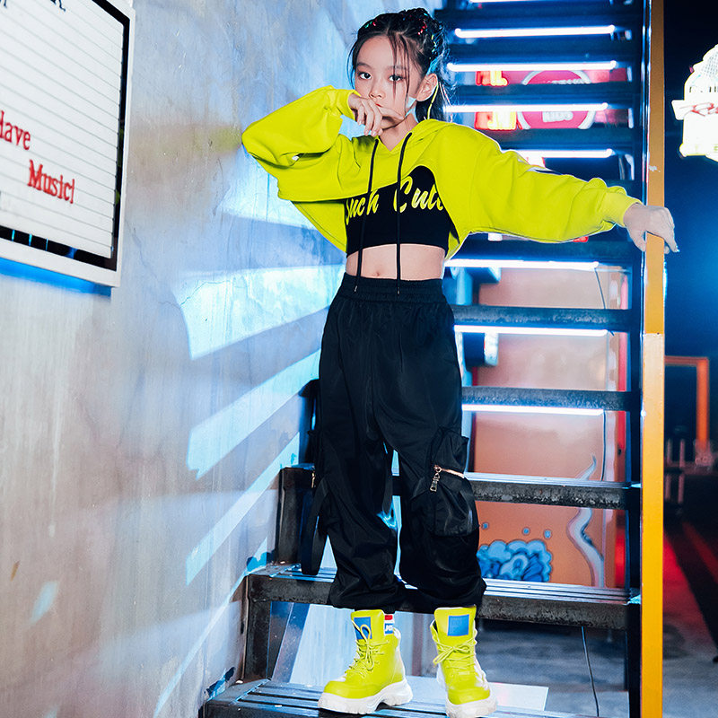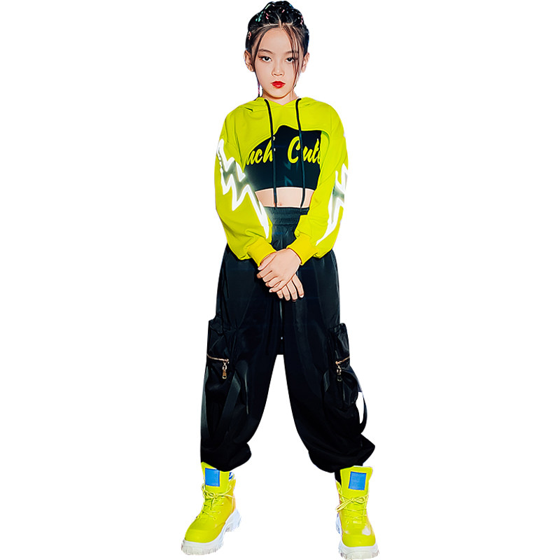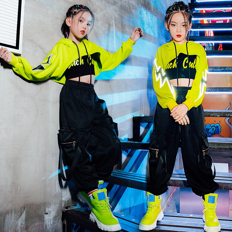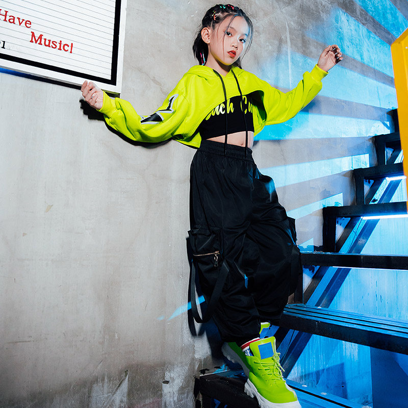 Children's costumes girl hip-hop hip-hop suit performance costume girls jazz dance costume fluorescent crop top trendy
