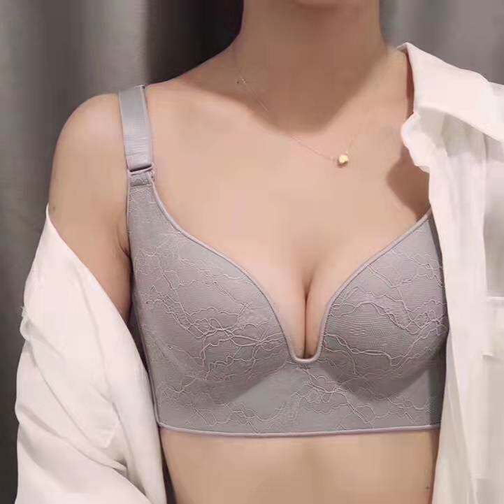 The new Grisen embroidered lace sexy bra without steel ring one piece gather adjustable underwear time secret