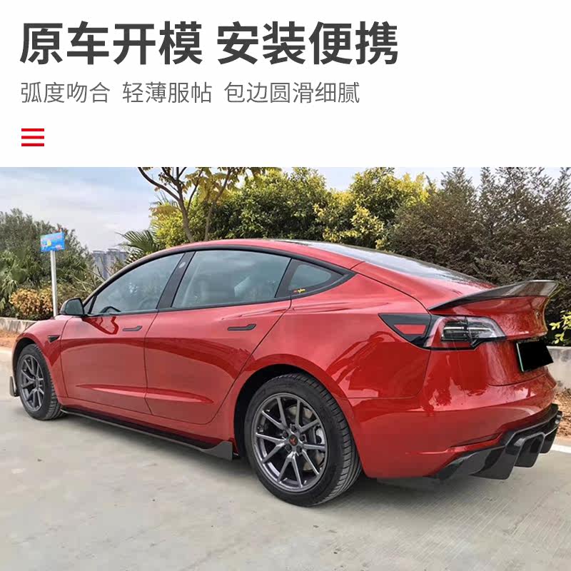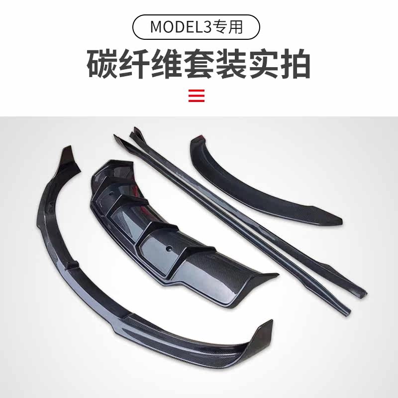Tesla model3 carbon fiber front shovel Front wing side skirt Rear wing tail surround kit Upgrade modification decoration