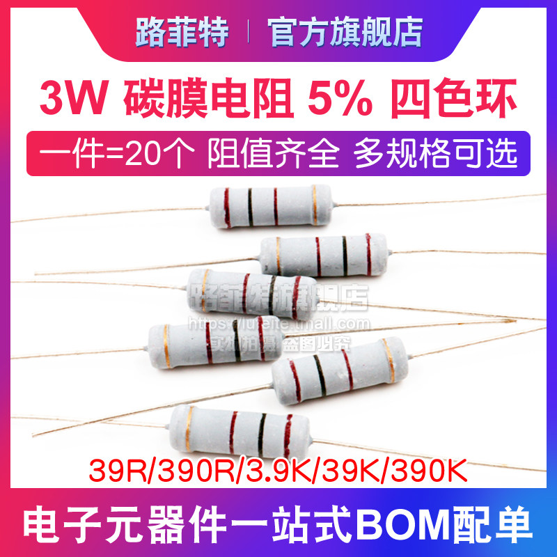 3W CARBON FILM RESISTANCE 5% FOUR COLOR RING 39R 390R 3 9K 390K 390K Ohm resistor