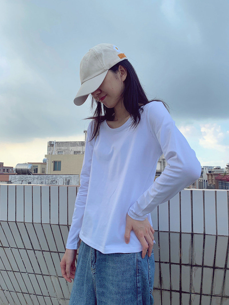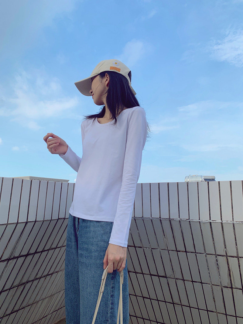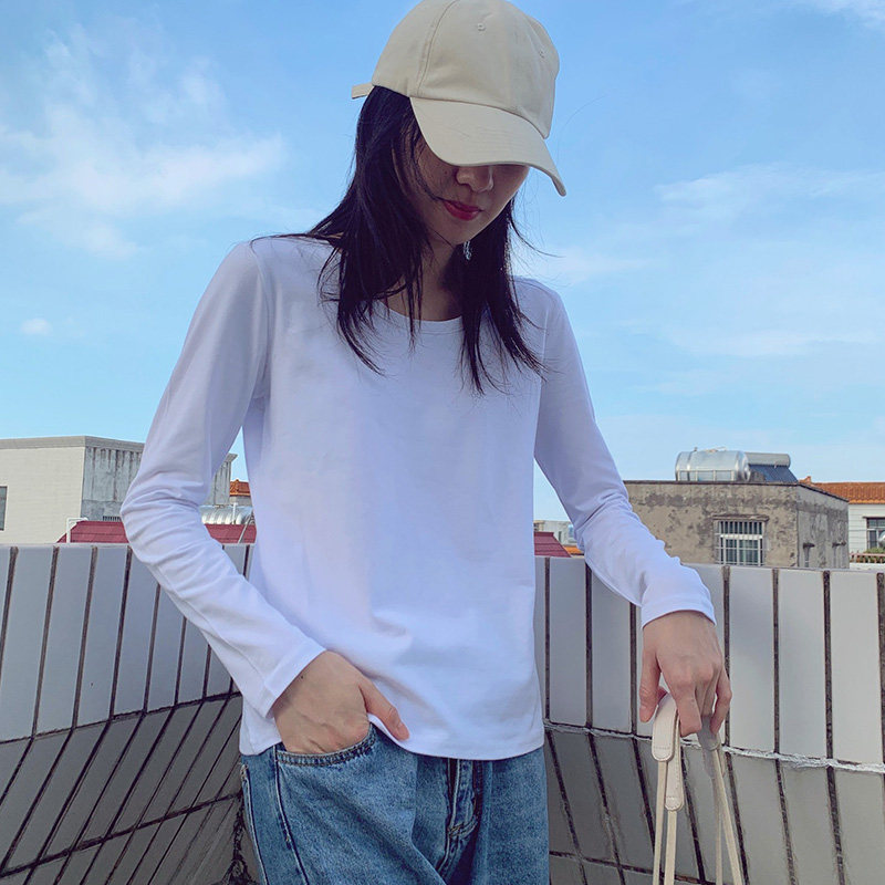 Spring and winter low round neck white base shirt women's long-sleeved t-shirt skinny slim autumn clothes Pure cotton inner ride ins wild