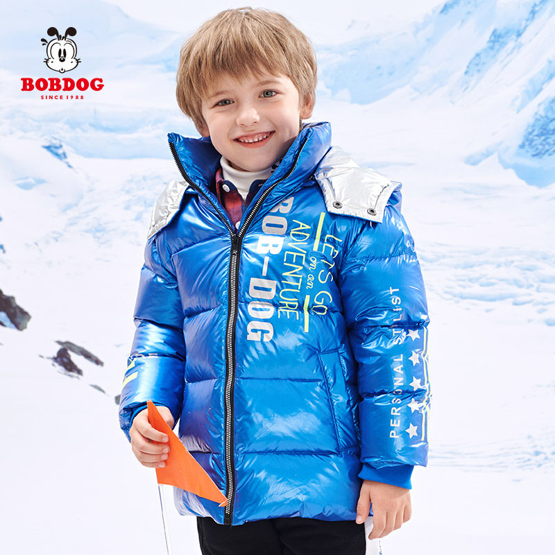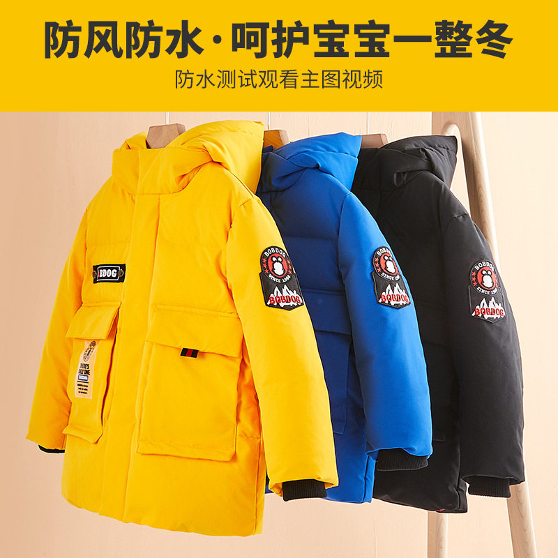 Babu Bean Child Bottling Boy Medium Long Version Down Clothing Winter Thickening Warm Coat 90 White Duck Suede Korean Version of the Ocean Wave