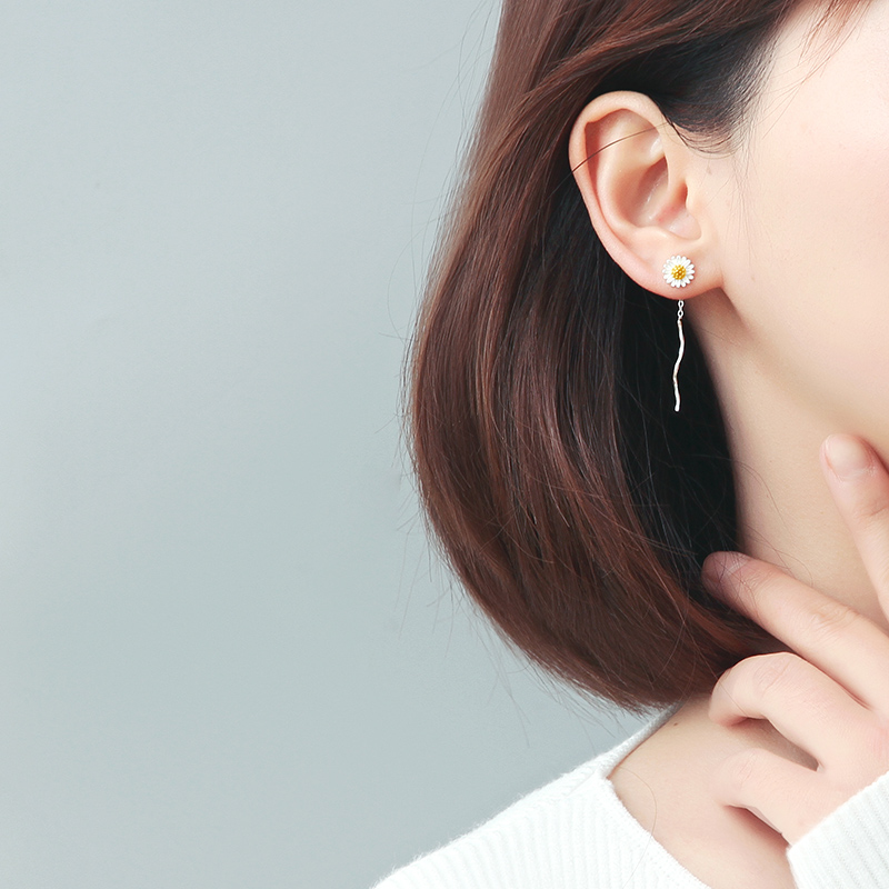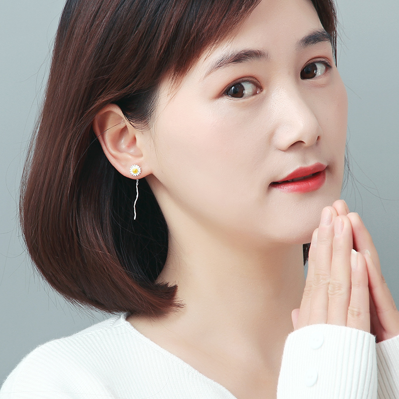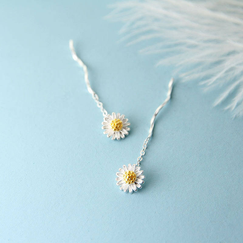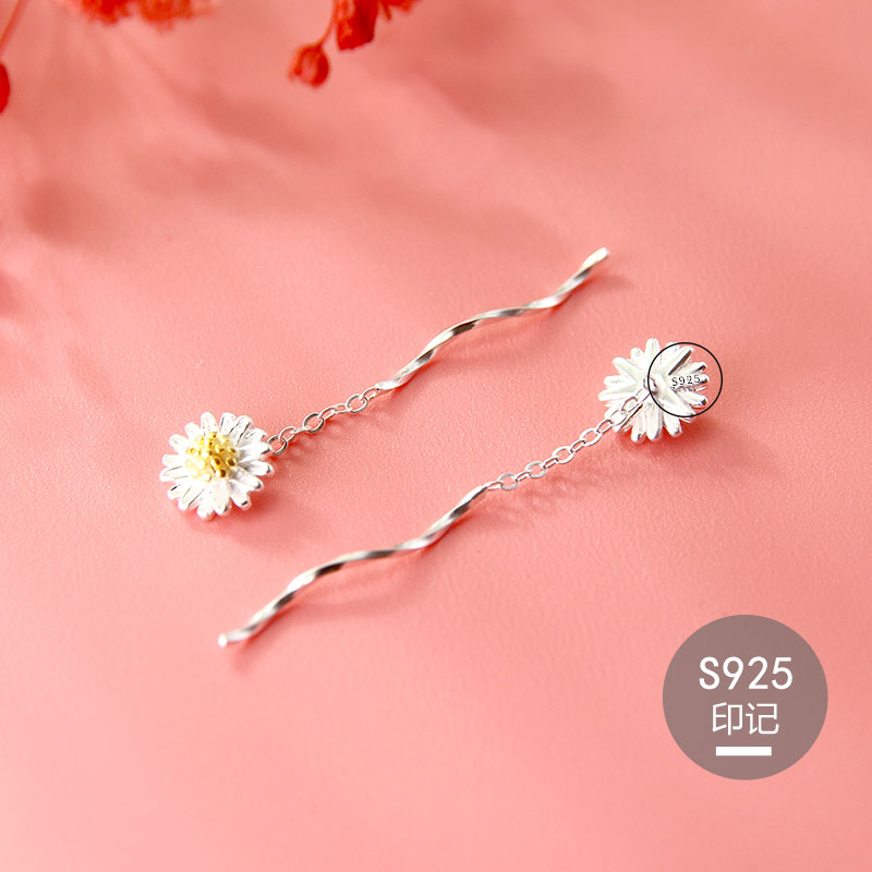 Daisy Trunks Women's Pure Silver Sensual Flowers Delicate Niche Design Temperament Web Red Long Version Earrings Lins Lukewarm Wind