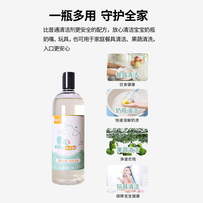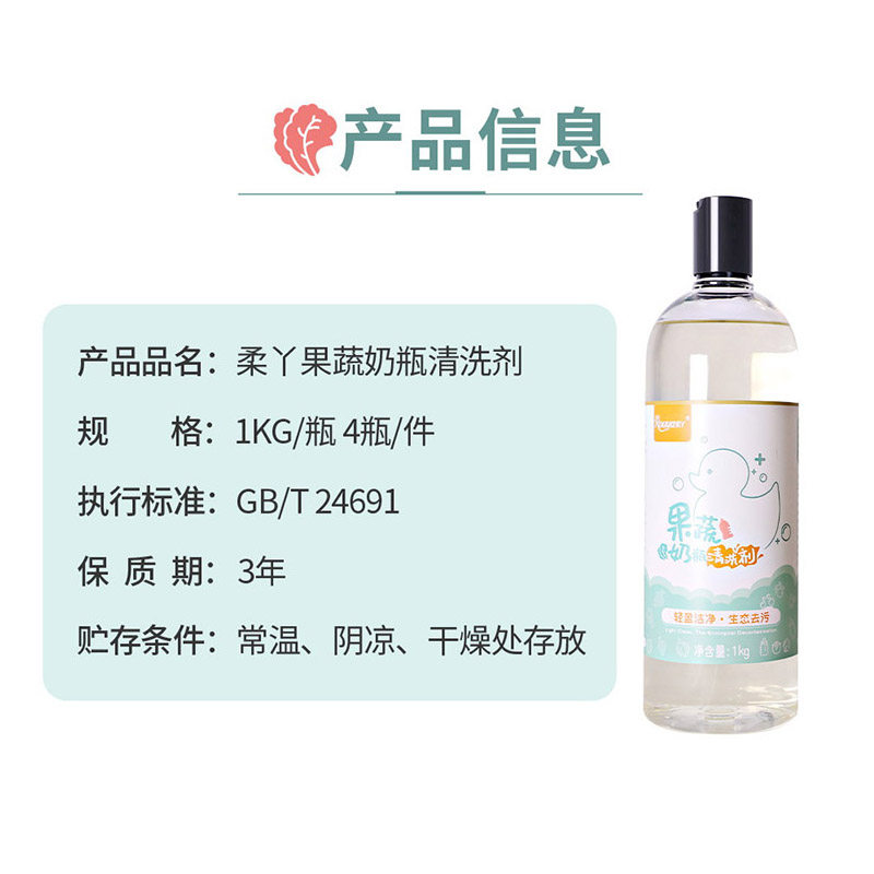 Rouya fruit and vegetable bottle cleaner newborn child cleaner 1KG bottle*4 bottle oversized family pack
