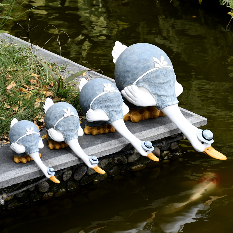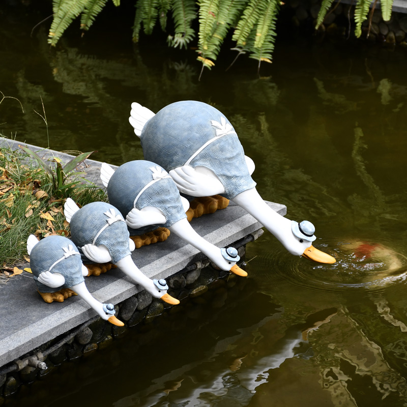 Garden Courtyard Pool Decoration Cute Duck Swing Piece Creative Small Animal Sculpted Resin Handicraft Balcony Placement