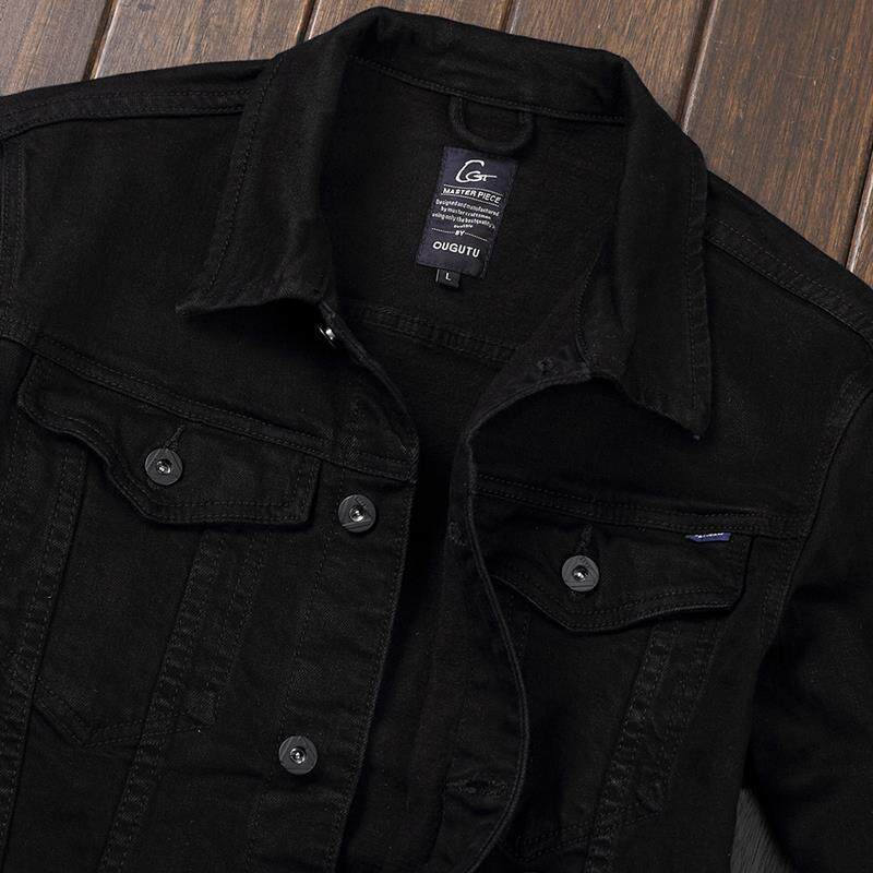 Chinese Style Retro Denim Jacket Men's Short Elastic Slim Black Top Overalls Workwear Trendy Men's Plus Size Jacket