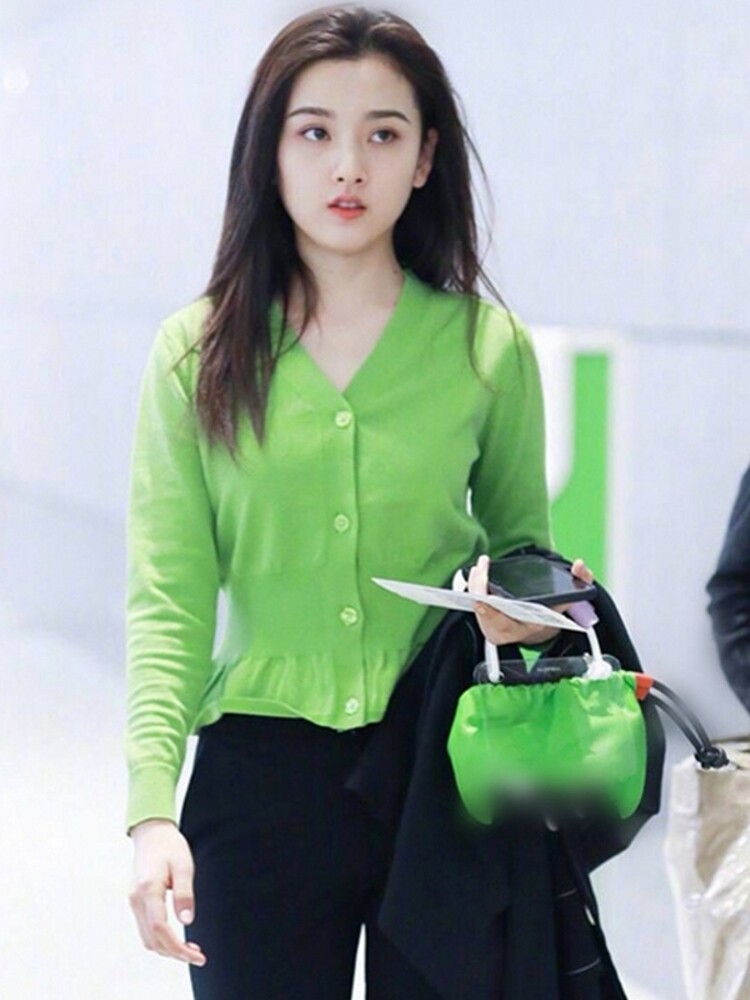 Super beautiful ~ Song Zuer star same style fashion sweet fruit green knitted sweater female stretch slim cardigan female top