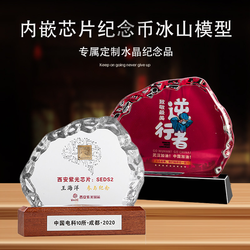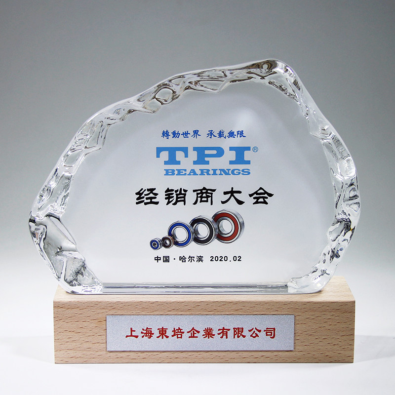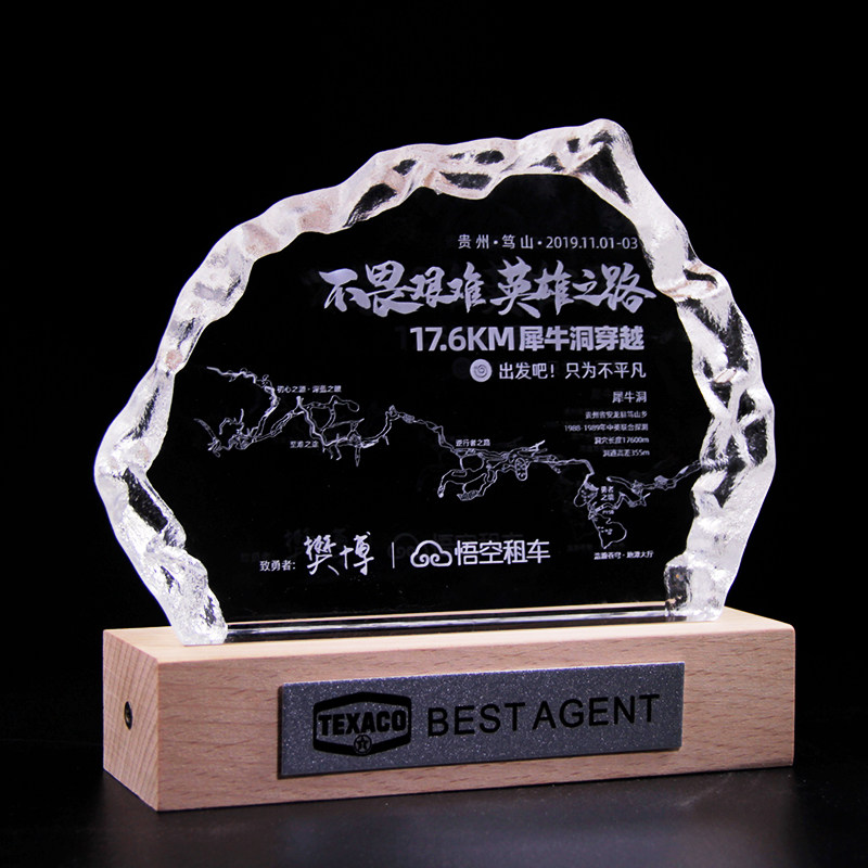 Mountain peak-shaped iceberg luminous crystal laser carving ornaments custom solid wood base company anniversary souvenirs