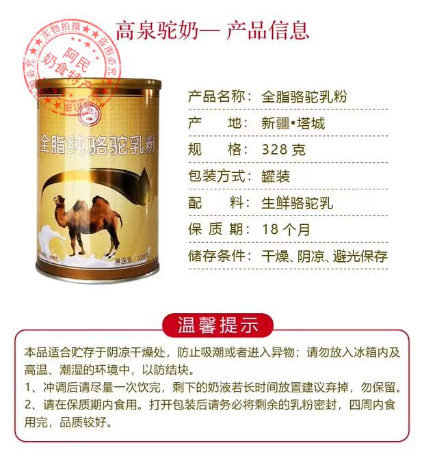 High Springs Full Fat Camel Milk Powder 328g Canned Xinjiang Pure Camel Milk Powder Children Adults Middle Aged No Sugar Added