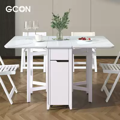 Zhiguang rock board folding table small apartment solid wood dining table and chair combination ultra-thin folding table household induction cooker table