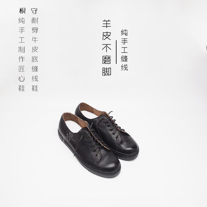 Black Sheep Leather Casual Male Soft Underfloor Shoes Hand Stitched Vibram Anti Slip Bottom Large Size Men's Shoes Keeper Handmade Shoes