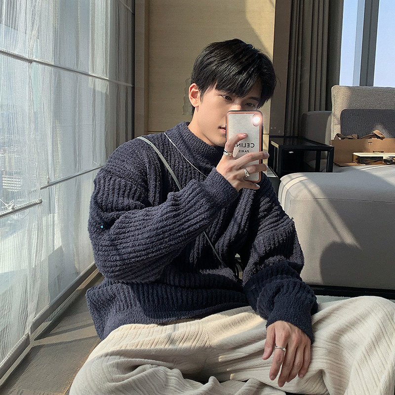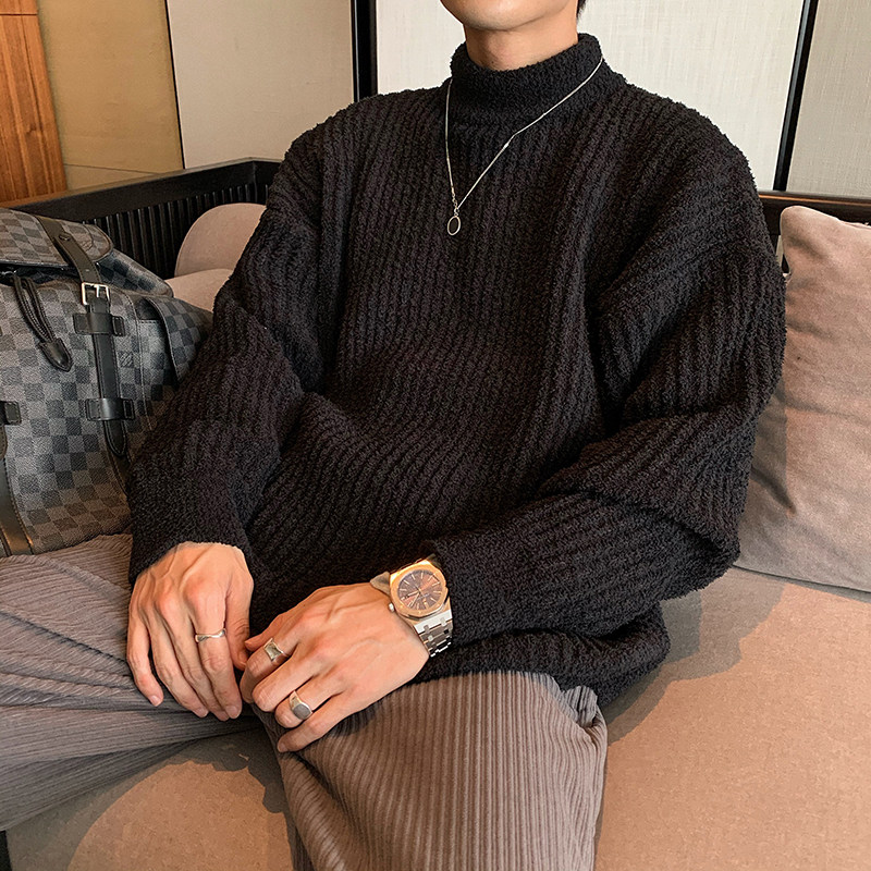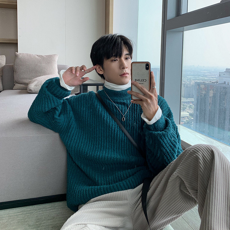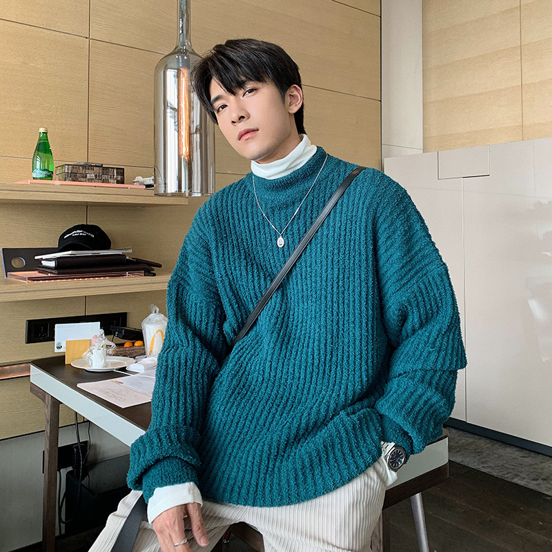 Hualun winter Korean tide half high collar sweater men autumn and winter loose ins tide thickened velvet knitted sweater