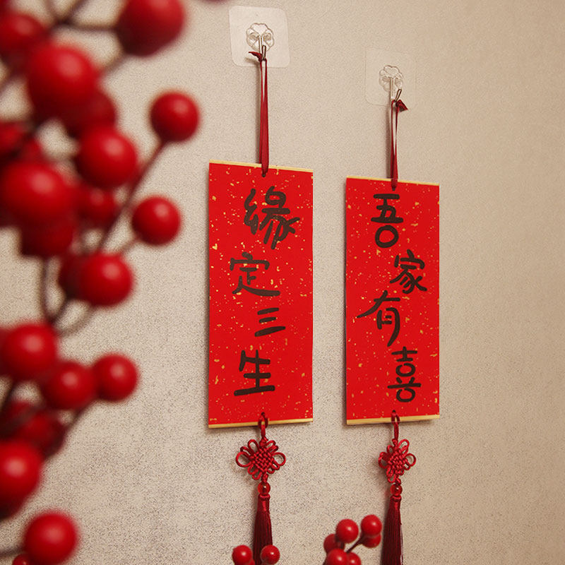 Marriage small couplet my family has a hi new wedding hi joint wedding room decoration decoration pendant new year living room door handle hanging ornament
