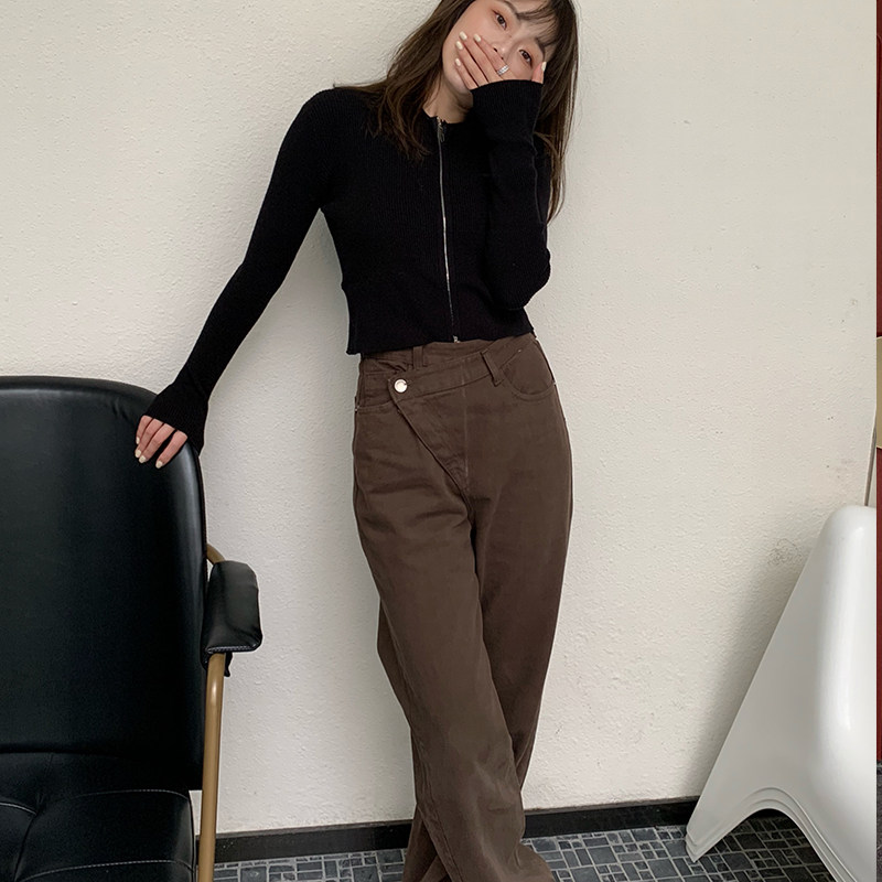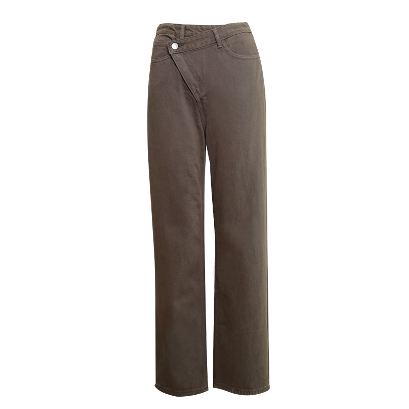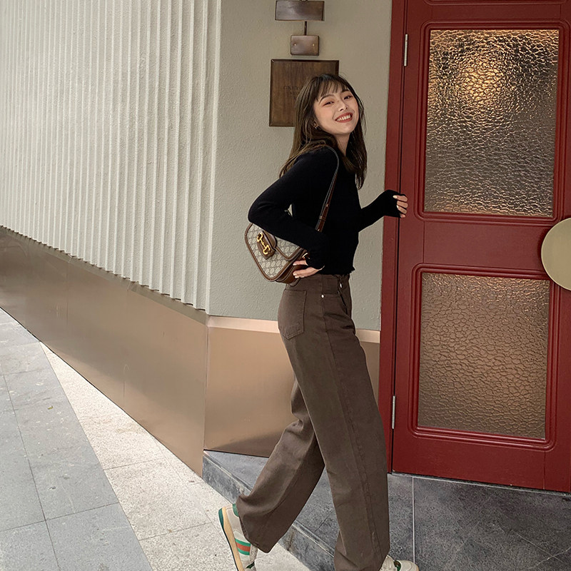 Small Pull-out Pint Coffee Skew Denim Jeans Wide Pants Woman Autumn Winter New Pint Slim 100 Lap Straight Barrel Long Pants Casual Pants